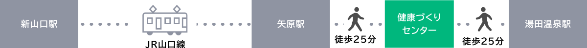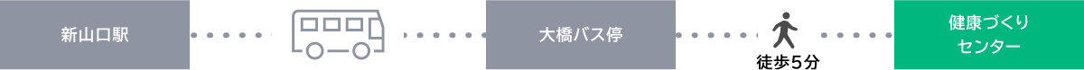「大橋」停留所で下車(乗車時間:約30分)後、徒歩約5分で山口県健康づくりセンターに到着します。