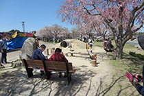 ちょうど昼時だったということもあり、多くの家族連れが川沿いの桜を見ながらお弁当を楽しんでいました。