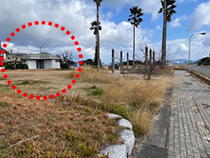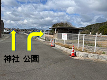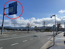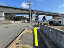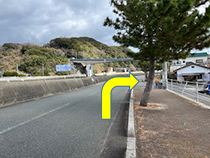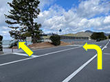 2~3分歩くと見える横断歩道を渡り、さわやか海岸へ向かいます(E地点に到着)。