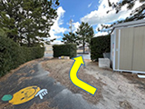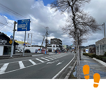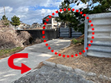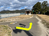A地点に到着です。ここで右へ曲がり、しばらく道なりに歩道を歩きます。