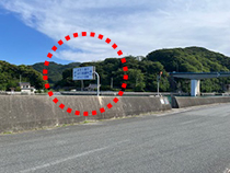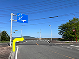 青海大橋のふもと、県道56号線につながる道へ出て、右へ曲がります。