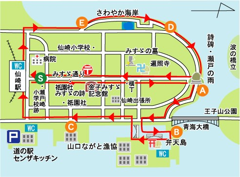 仙崎駅から道路を渡って真っすぐ進むとみすゞ通りにつながります。