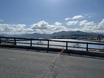 目の前に青海島へ続く青海大橋を見ながら、道なりに進みます。