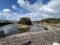 トイレの前を進み、港まで出て左を見ると、小さな島が浮かんでいるように見えます。
