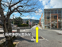 途中、道路がアスファルトから石畳に変わりました。左手には長府藩侍屋敷長屋が見えます。