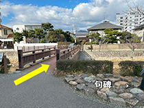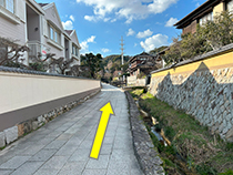 敷地を出て左方向に進み、そのまま石垣に沿うようにすぐ左に曲がりました。