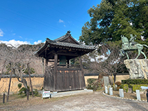 取材者個人の好みで、写真のフォーカスが鐘楼になってしまいました。高杉晋作挙兵騎馬像が右端に写っています。