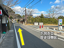 次の目的地「長府毛利邸」に向かいました。山門前の通りを左方向に進みます。道の反対側には下関市立歴史博物館があります。