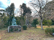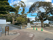 敷地内に入ってすぐのところに邸内案内図が設置されていました。近くには長府藩初代藩主の秀元公銅像が設置されており、来訪者を迎えてくれます。