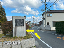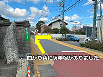 曲がり角に庚申塚が設置してあるので、目印になります。