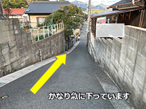 写真ではわかりづらいかもしれませんが、この道はかなり急な下り坂です!次の日の筋肉痛をここで覚悟しました。