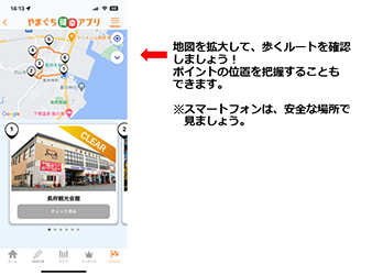 アプリのチェックインを済ませ、次のポイントに向かいます。