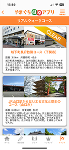 やまぐち健幸アプリを起動し、画面下のメニューから[イベント]→[リアルウォークコース]の順で選択します。表示されるコース一覧から「城下町長府散策コース」を選択して、ウォーキングスタートです!
