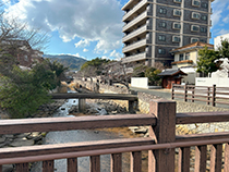 会館の右手には壇具川が流れています。橋が架かっていたので向かいました。