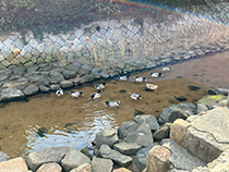 川沿いには多くの桜の木が植えてあり、春の満開の桜と往時の風景を頭の中で想像しながら、橋の上から眺めた風景に癒されました。橋を渡り川の上流に向かって、次のチェックポイントを目指し歩きました。