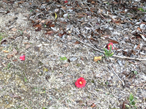 木の下に落ちたヤブツバキの花の赤が際立って見えました。