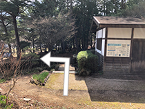 県木・市町木展示園を過ぎて交差点で出たところで、「遺跡展示園」という埴輪のイラスト入りの案内表示に目が留まりました。その先を見ると、土器のようなものが複数展示されています。順路は左折ですが、直進して遺跡展示園に寄り道します。