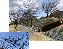 山口県セミナーパークが芝桜の名所だと知り、まだ咲くには時期が早いと思いつつ植栽されている場所を見に行きました。少しだけ花が咲いていましたが、開花時期はまさに花の絨毯のようなのだとか。桜の木もたくさん植栽されていたので、お花見シーズンが今から楽しみです。