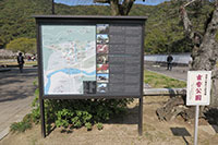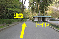 この地点から岩国城まで2.1Km。登山道に入る前にトイレがあるので利用しておくと安心です。駐車場からここまでで約2,000歩です。