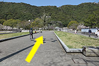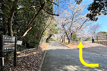 遊具を左手に見ながら進むと「岩国城300m」と表示があり、整備された道を進みます。