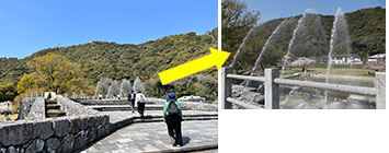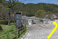 錦帯橋の料金所まで来たら右手に曲がり錦帯橋を背に進み、吉香公園へ向かいます。