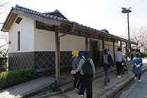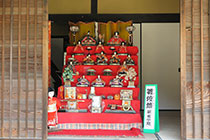 昭和中期のお雛様が飾られていて春の華やかさを感じることができる空間でした。住宅は一見平屋づくりに見えますが、2階建になっており、窓がない構造は上位身分の武士を見降ろさないよう配慮したものだそうです。