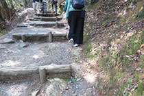 往路と逆に下り坂や階段を下る場所が多いです。分かれ道には平坦な道と階段の道に分かれているところがありました。