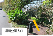 光大橋を渡らず、島田川を右手に見て川沿いを少し歩くと、[B]地点島田川河川公園入口がありました。