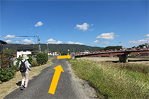 車道から川土手の道に入ると平成橋はすぐそこです。