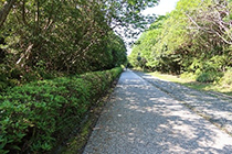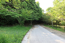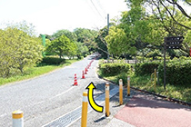 遊歩道が終わり、アスファルトの道に出て左に進みます。