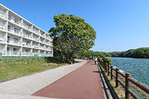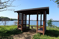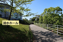 湖水ホール(東駐車場)の近くには桜山があり、桜の時期には多くの方が家族や仲間と花見を楽しみます。今回は湖水ホールの前を右に進みました。