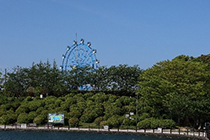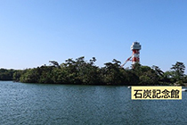 観覧車の左には石炭記念館の建物。かつて石炭の産出地であり、石炭産業で発展してきた宇部の歴史を知ることができる記念館です。記念館の展望台からは常盤湖が一望できます。