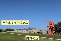 彫刻が数多く展示されている丘の向こうには世界各地の植物を見ることができるときわミュージアムです。