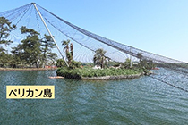 丘の反対側の常盤湖にはペリカン島、その先は常盤神社があります。