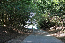 常盤湖を右に見ながら湖水ホールに向かって進んでいきますと、木漏れ日の気持ちいい道に入っていきます。