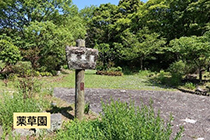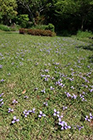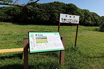 日差しがまぶしい中、道なりに進んでいくと薬草園の看板。周辺にはチリアヤメがたくさん咲いていました。
