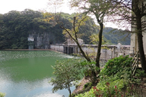 大雨の後で、ダムはなみなみと水を蓄えていました。ついつい記念写真を撮りたくなる風景でした。