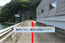 ダム天端の遊歩道は、森林セラピー基地大原湖畔エリアに続く森林セラピーロードです。
