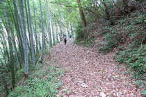 左手に竹林越しに大原湖を望みながら、【B】地点の休憩所を目指します。道は、綺麗に整備されていますが、所どころ狭く柵が無い場所もあったので、滑らないように注意して、山側を歩くようにしました。