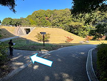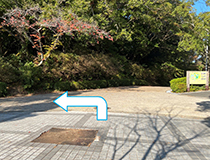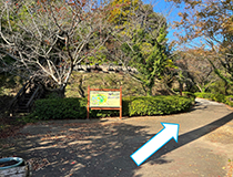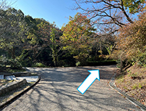 ここから左に曲がり、ぐるりと円状の道を上がります。あじさい園を左手に見下ろしながら、次の分岐点を右に曲がります。
