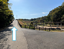 橋を渡りきったところで右方向に進みます。ここからしばらく上り坂になります。