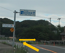 今回、私たちは「阿多田交流館」に立ち寄り、神花山古墳に向かいましたが、直接古墳に向かう方は、阿多田交流館の案内板からもう少し県道23号線を走ると、すぐ「神花山古墳」の案内板があります。ここを入るとすぐ、神花山古墳入口です。