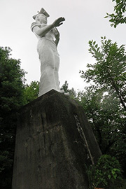 頂上まで、あと少しの所で・・左手の木々の間から、「古代女王之像」が垣間見えたので、ちょっと下りて、像の近くまで行ってみました。