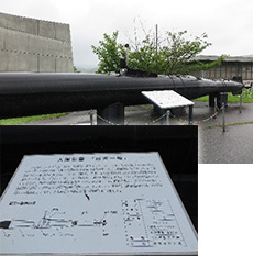 阿多田交流館は、平成16年、平生回天訓練・基地の跡地に建てられたそうです。正面出入口の横には、実物大の人間魚雷(回天)のレプリカが設置されていました。