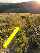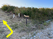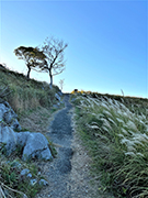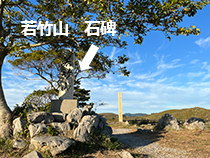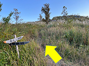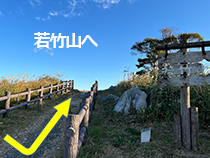 すすきと石灰岩に囲まれたアップダウンの道を進むと、若竹山の看板を発見!