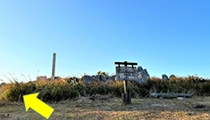 次は、剣山へ向かいます。上ってきた坂を戻り、左方面に進みます。少し歩くと分かれ道になっていて道標が立てられていました。「剣山」と記されている右の道へ進みます。