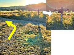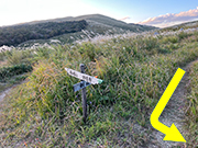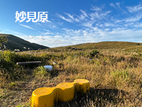 草原の中をひたすら進むと、三叉路になっていてここにも道標が。「妙見原」と書かれた左側へ進みます。