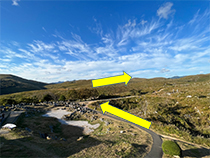 見晴らしの良い道の遠くにはゴールの展望台が見えます。