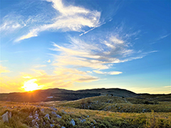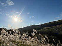 夕方にかけてのウォーキングだったので、コースの途中で見たすすきと夕陽に包まれた秋吉台は、思わず写真に収めたくなるとても素敵な景色でした。