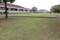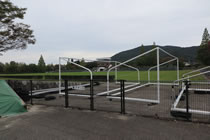 コースに沿って進むと、左手にはラグビー・サッカー場がみえてきました。グランドがかなり広く、一面緑色なのが印象的でした。